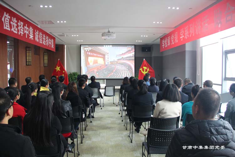 10月18日上午9時(shí),中國(guó)共產(chǎn)黨第十九次全國(guó)代表大會(huì)在北京隆重開幕。甘肅中集實(shí)業(yè)集團(tuán)有限公司黨委組織集團(tuán)公司黨委下屬五個(gè)黨支部全體黨員、入黨積極分子及十余家分公司中高層管理人員收看開幕實(shí)況直播。