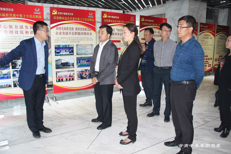 2017年9月27日下午,蘭州市委常委、組織部部長李宏亞一行在區(qū)委常委、組織部部長賈向紅、副部長楊顯輝、安寧區(qū)非公黨委副書記何健興、劉家堡街道負責人陪同下蒞臨公司調(diào)研指導黨建工作,集團公司黨委副書記、董事長助理董廣科、黨委委員魏建峰、安 康陪同調(diào)研。