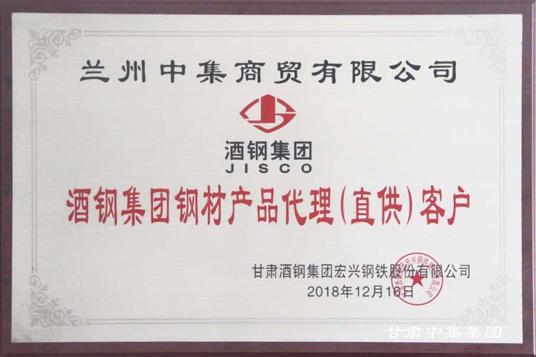 2018年12月12日,由酒鋼集團(tuán)宏興鋼鐵股份有限公司組織的“2019年酒鋼碳鋼產(chǎn)品推介暨客戶座談會(huì)”及“2018年度全國百家金牌供應(yīng)商頒獎(jiǎng)典禮”在蘭州皇冠假日酒店召開。甘肅中集實(shí)業(yè)集團(tuán)有限公司及下屬子公司蘭州中集商貿(mào)有限公司、天水中集商貿(mào)有限公司榮獲“酒鋼集團(tuán)鋼鐵產(chǎn)品代理(直供)客戶”及“2018年度金牌代理商”殊榮。