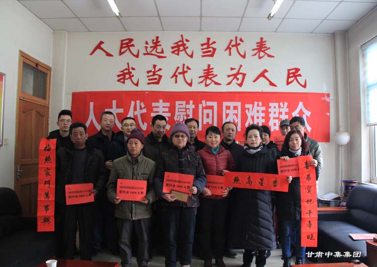 2018年2月7日上午,在2018年新春佳節(jié)即將來(lái)臨之際,甘肅省慈善總會(huì)榮譽(yù)會(huì)長(zhǎng)、安寧區(qū)人大代表、甘肅中集集團(tuán)董事長(zhǎng)周啟濤親自安排部署,并委托集團(tuán)公司黨委委員魏建峰、安 康兩位同志親自前往安寧區(qū)十里店街道辦事處,在街道黨工委副書(shū)記、人大工委主任梅鵬飛等領(lǐng)導(dǎo)陪同下,開(kāi)展愛(ài)心送溫暖行動(dòng),為街道10戶特困家庭送上新年的祝福和慰問(wèn)金。