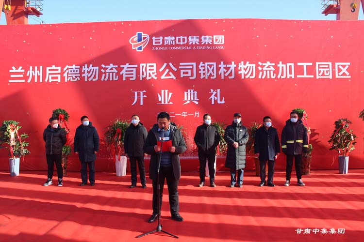 2021年1月12日上午10:18分,甘肅中集實業(yè)集團有限公司旗下蘭州啟德物流有限公司河口鋼材物流加工園區(qū)開業(yè)慶典在甘肅物產(chǎn)集團河口物流園隆重舉行。甘肅中集實業(yè)集團有限公司黨委書記、董事長周啟濤隆重宣布物流園開業(yè)。酒鋼集團、八一鋼鐵集團、內(nèi)蒙古包鋼集團、甘肅省物產(chǎn)集團河口物流園、甘肅省鋼材商會、物流園轄區(qū)及公司合作伙伴等100余名領(lǐng)導(dǎo)嘉賓參加開業(yè)慶典。