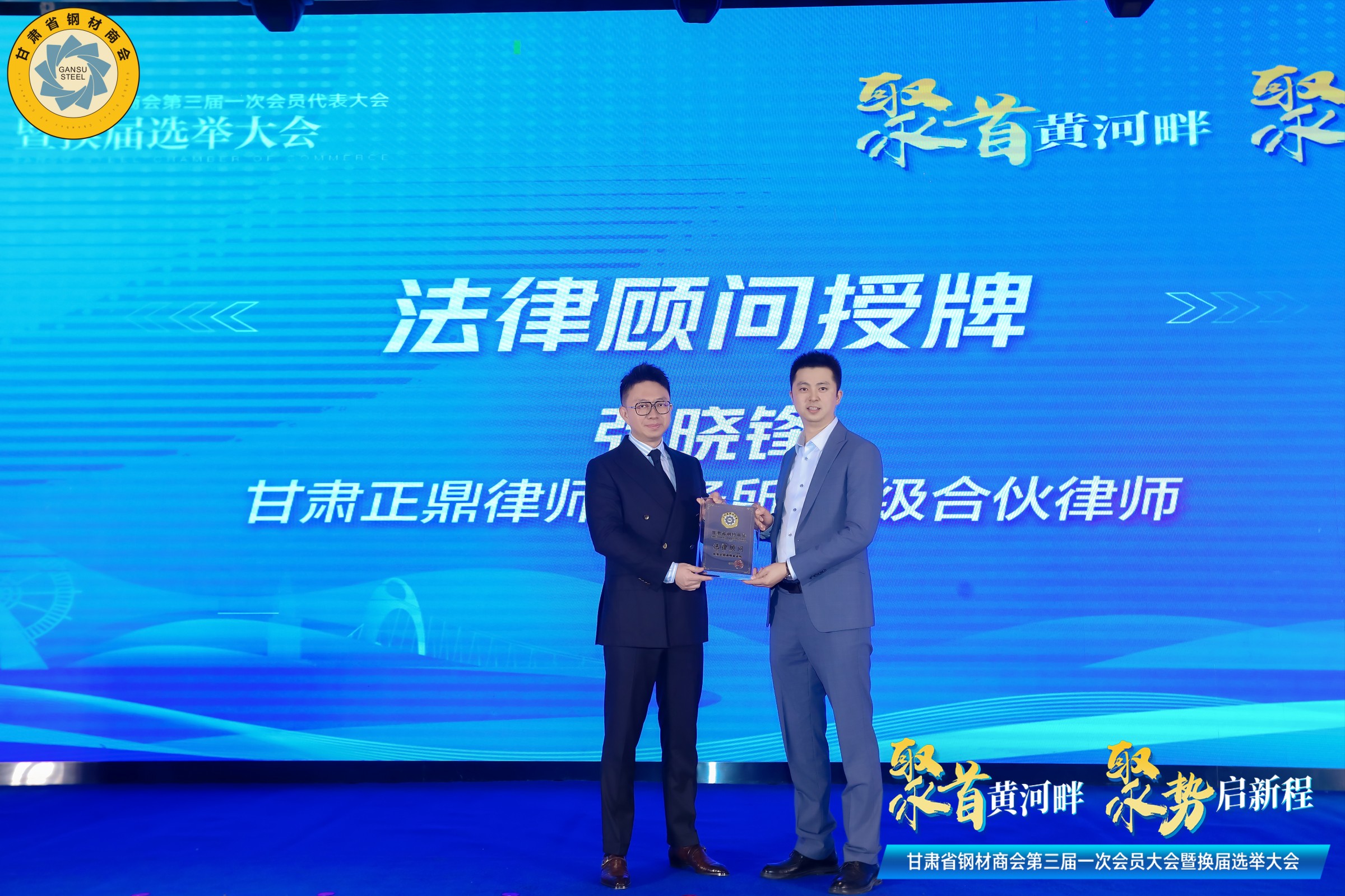 甘肅省鋼材商會會長周啟濤為法律顧問單位--甘肅正鼎律師事務(wù)所授牌