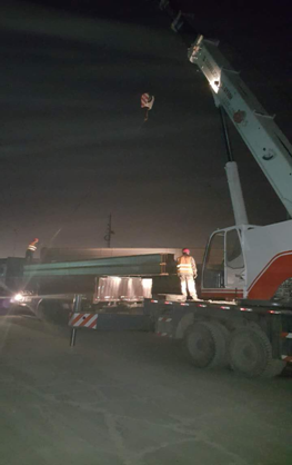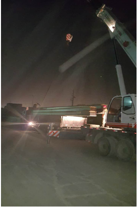 看,夜深人靜中,圖片中我不知道他們的姓名,看不到他們的面孔,但是我看到了:汽車吊上站著我們的員工,貨車上站著我們的員工,操作臺上有我們的員工,他們是那樣的不怕苦、不怕累,那樣的認真、那樣的堅守……
