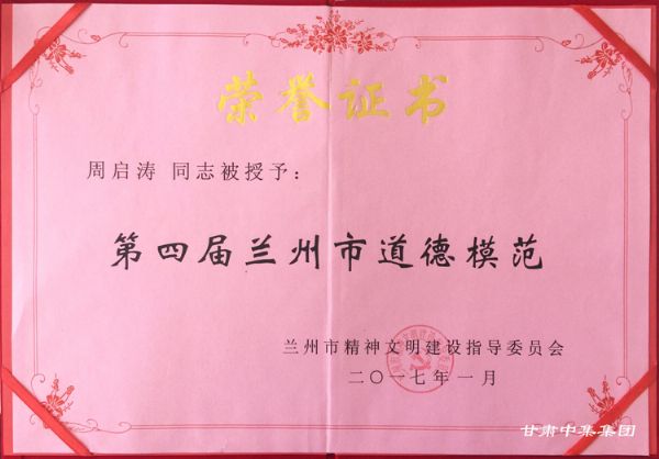 4月20日,蘭州市創(chuàng)建全國(guó)文明城市百日攻堅(jiān)動(dòng)員大會(huì)在省政府禮堂隆重召開(kāi)。省委常委、蘭州市委書(shū)記李榮燦出席會(huì)議并講話,省委宣傳部副部長(zhǎng)、甘肅省文明辦主任李均出席會(huì)議并講話,蘭州市委副書(shū)記、市長(zhǎng)欒克軍主持會(huì)議。甘肅中集實(shí)業(yè)集團(tuán)有限公司董事長(zhǎng)周啟濤列席會(huì)議,并受到市委、市政府隆重表彰,授予周啟濤董事長(zhǎng)“第四屆蘭州市道德模范”榮譽(yù)稱號(hào)。
